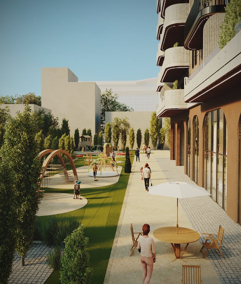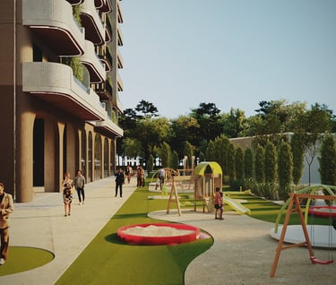 Për të adresuar këto kërkesa, projekti Arcadia u zhvillua me një arkitekturë bashkëkohore që harmonizon dizajnin modern me elemente funksionale të jetesës urbane. Të gjitha apartamentet janë projektuar me dritë natyrale të bollshme, organizim inteligjent dhe pamje të hapura, ndërsa hapësirat e përbashkëta përfshijnë gjelbërim, zona relaksi dhe kënde socializimi që rrisin cilësinë e jetesës.